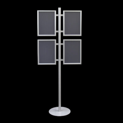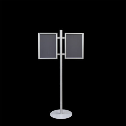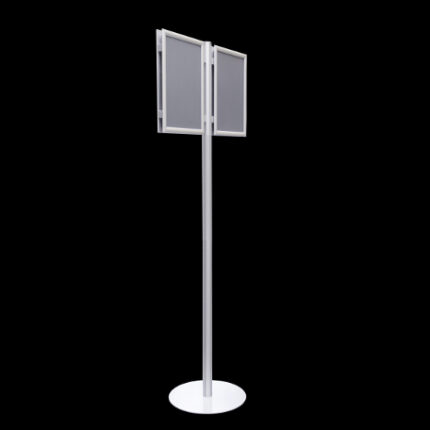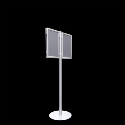 Infodrager H=148cm met 2x A4 kliklijst (portrait), links en rechts aan de staander. Uit voorraad leverbaar.
