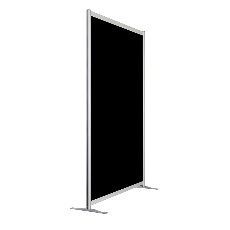 Wand zwart op voeten HxB213x145cm De modulaire separatiewanden zijn uitgevoerd in een aluminium frame met een gemelamineerde vulling (of kanaalplaat op aanvraag). De wanden zijn ook met 1 staander telkens doorkoppelbaar. Los geplaatst met 2 staanders koppelbaar, echter onze ervaring leert dat dit vanwege zijn sterkte en stabiliteit onnodig is. De wand is toepasbaar als afscheiding in kantoor, werkruimte of openbare ruimtes als school, ziekenhuis, gemeentehuis, beurs, evenement, open dag of tentoonstelling. Alle wanden, zowel op wielen of voeten zijn nestelbaar. Wanneer u de wanden niet gebruikt nemen ze gemonteerd nauwelijks ruimte in. Ook transport van compleet gemonteerde wanden blijft betaalbaar op deze manier.